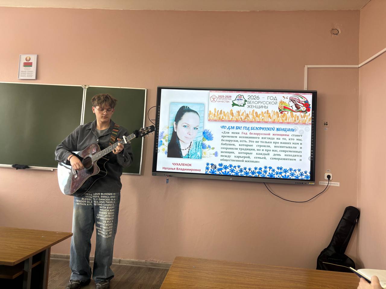 Особым смыслом мероприятие наполнил диалог о Годе белорусской женщины. Студенты рассказали, как их мамы воспринимают этот статус, какие надежды и ожидания связывают с ним. В выступлениях прозвучало, что для многих матерей этот год – не просто формальность, а возможность еще раз напомнить обществу о важности семейных ценностей, уважения к женщине-труженице, женщине-матери, женщине-хранительнице домашнего очага.