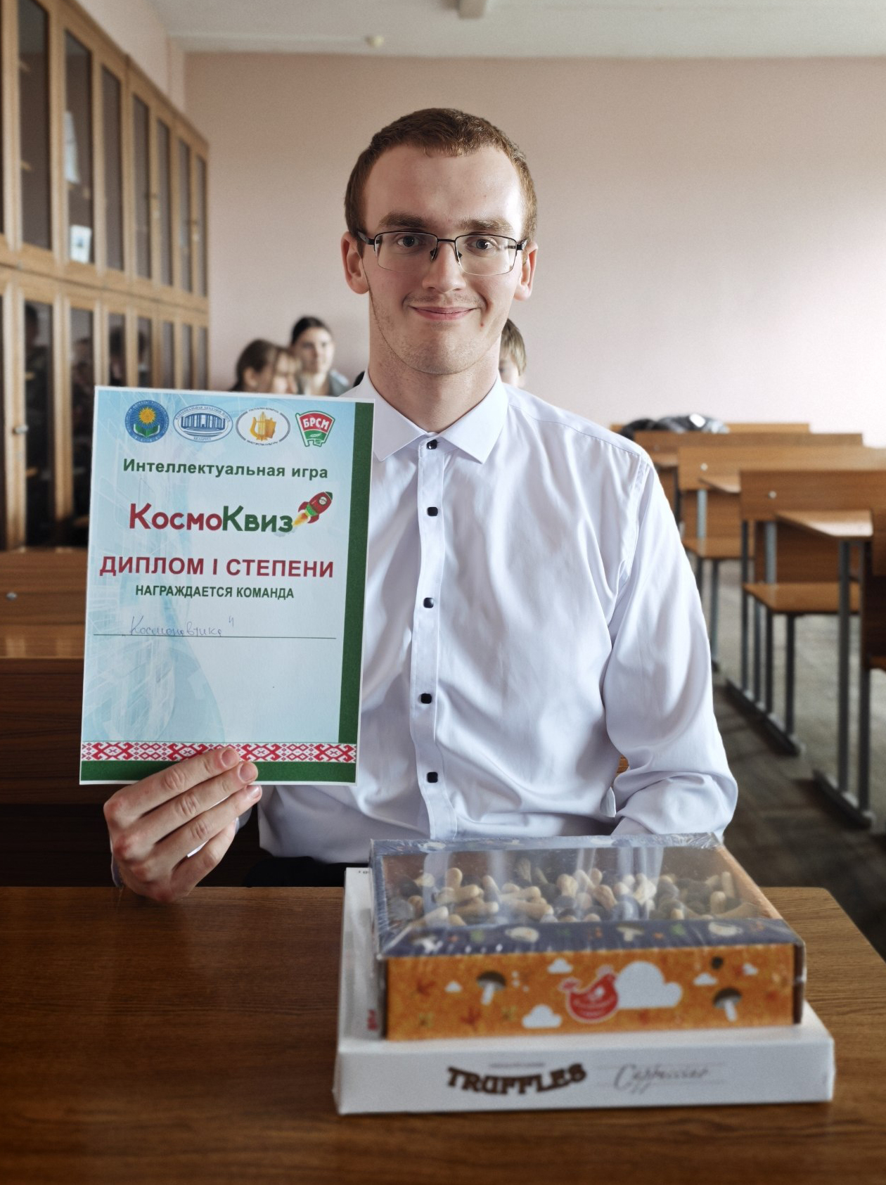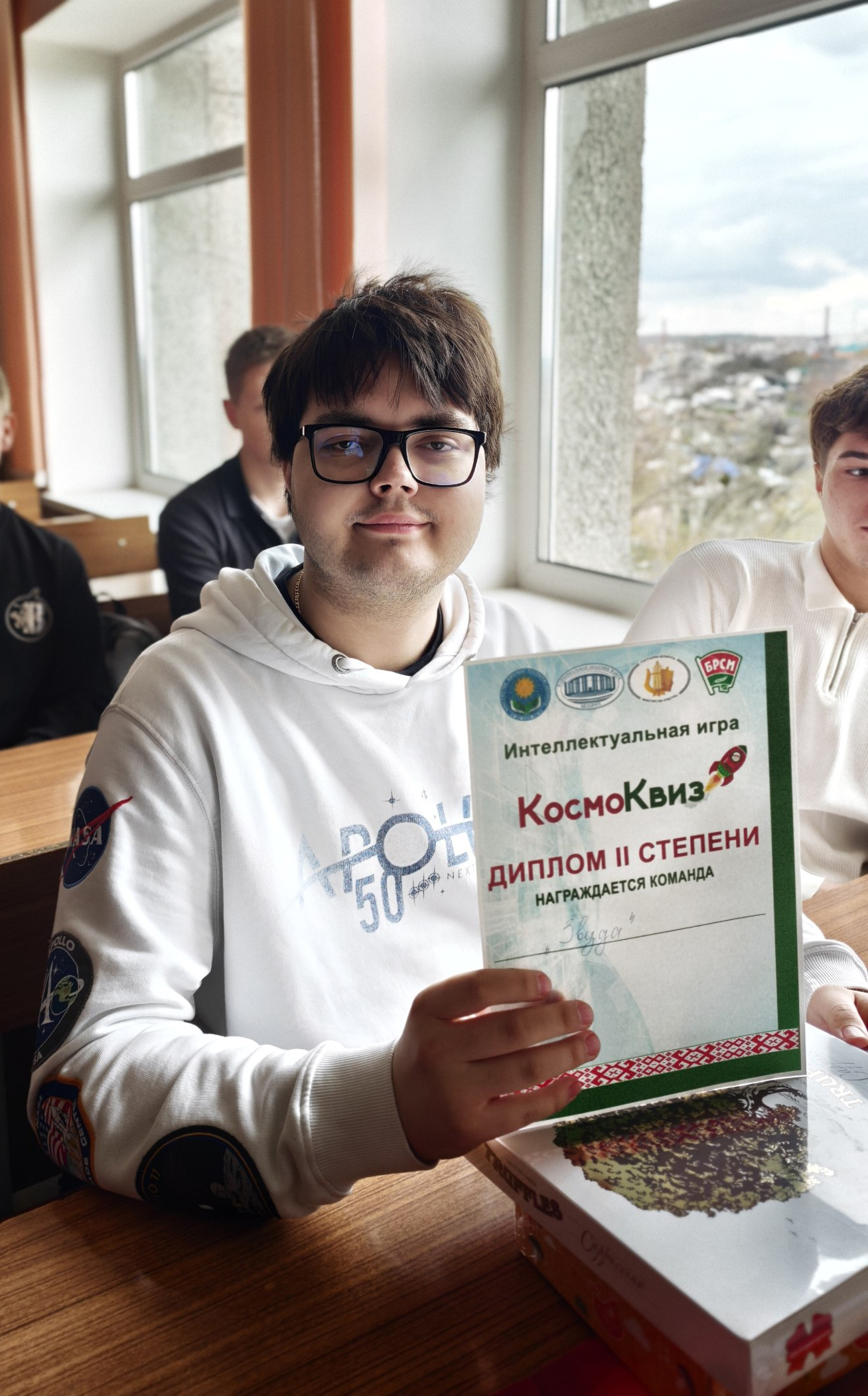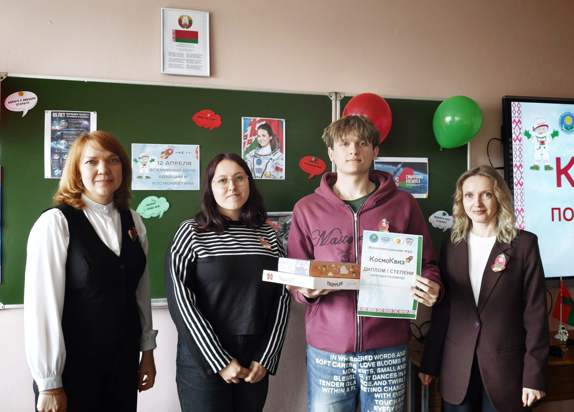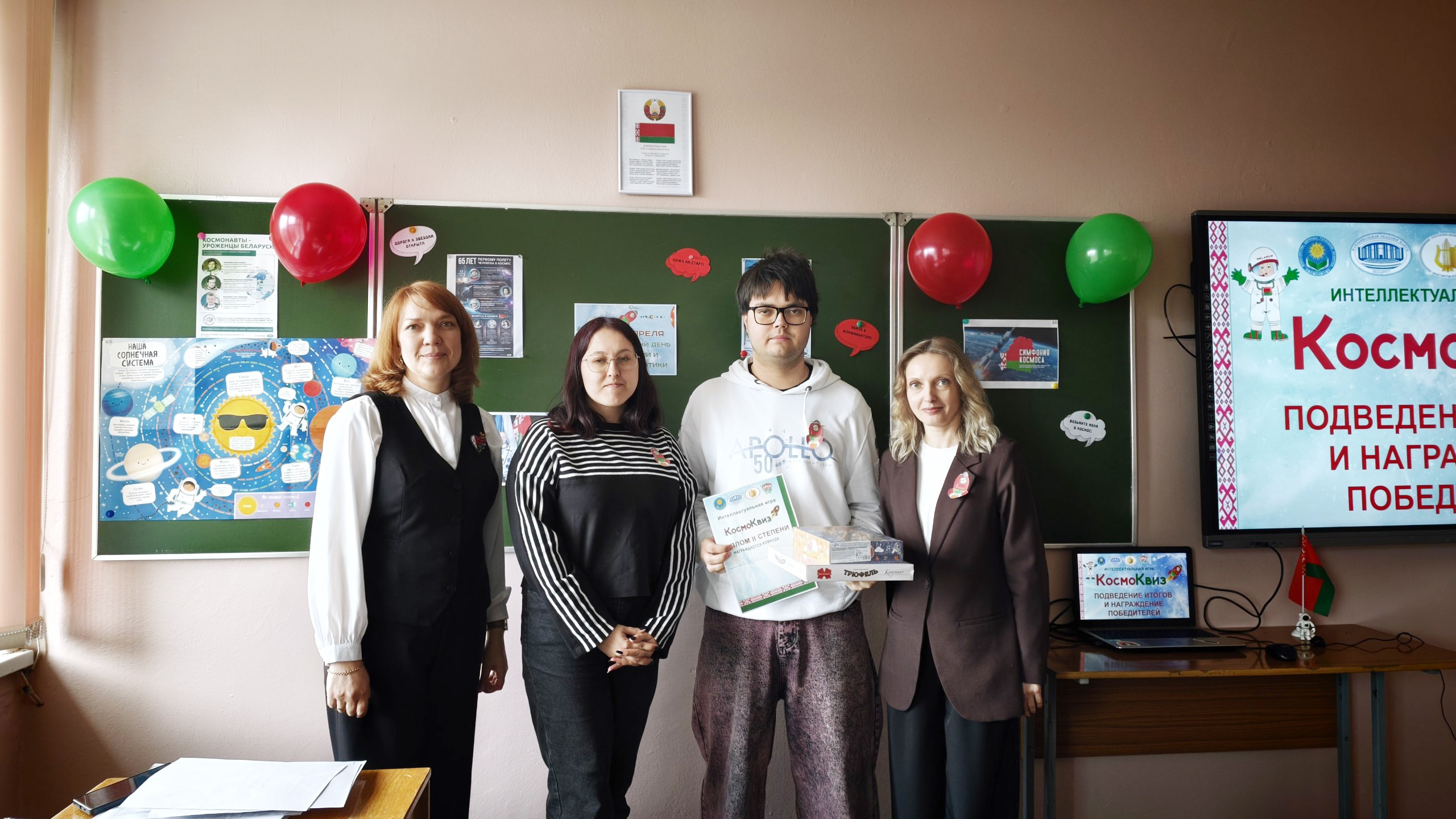 Затем состоялась увлекательная игра «КосмоКвиз», в ходе которой студентам предстояло выполнить самые разные задания о космосе. Команды были награждены дипломами и сладкими подарками.