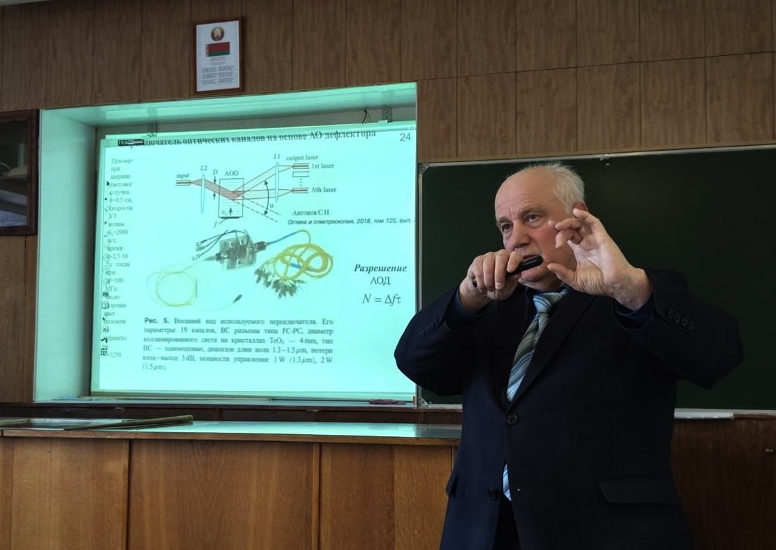 14 апреля 2026 года в рамках Недели молодежной науки в УО «МГПУ им. И.П. Шамякина» состоялась информационная встреча «Акустооптика и ее применения». Лектором выступил главный научный сотрудник научно-исследовательского сектора университета, доктор физико-математических наук, профессор Геннадий Владимирович Кулак.